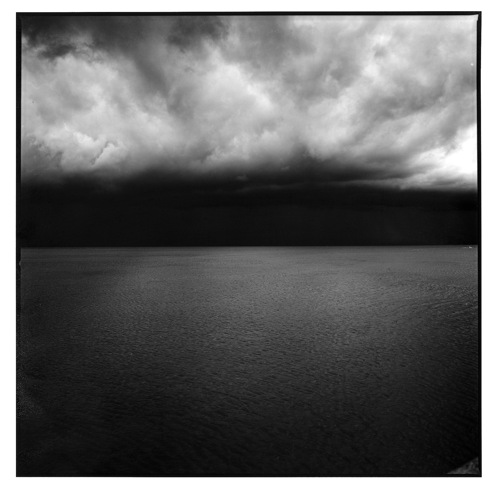 Τώρα αυτά τα θαλασσινά τοπία φέρουν τον τίτλο TIDE. Εδώ πρόκειται για το ασπρόμαυρο και γκρι υπόβαθρο της καθαρής, συγκεντρωμένης και δροσερής ματιάς. Καμία θαλασσογραφία με πλήθος πλοίων και τη δραματική πάλη ανθρώπου και θάλασσας· καμία παραθαλάσσια ζωγραφιά με ψάρεμα ή σκηνές λουομένων· κανένα αίσθημα Melville ή Joseph Conrad· καμία παρεξήγηση της τελευταίας στιγμής σε μακρινές λιμνοθάλασσες· ούτε μια ακτή ή παραλία αναγνωρίσιμη από τον θεατή — μόνο μια φορά ένα τάνκερ που φαίνεται σαν μαύρο σημάδι στον ορίζοντα, και άλλοτε, γύρω στο μεσημέρι, ένας φάρος. Αυτές είναι εικόνες πραγματικού χρόνου — ο Telemach Wiesinger δεν είναι κάποιος ψηφιακός «μάγος των pixels» που κατασκευάζει εφέ στον υπολογιστή. Καταγράφει με πάθος αναλογικές εικόνες, χρησιμοποιεί φίλτρα και ασκεί όλες τις τέχνες του σκοτεινού θαλάμου. Η κλασική διαδικασία μετατρέπει κάθε φωτογραφία σε μια στιγμή αλήθειας. Εκεί πάνω στον ουρανό, εκεί κάτω στη θάλασσα. Τι βλέπουμε; Τι γνωρίζουμε; (Wolfgang Heidenreich)